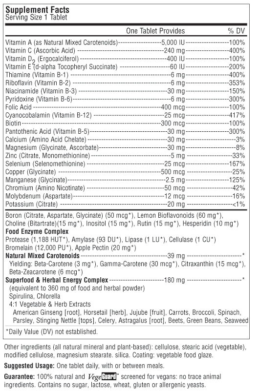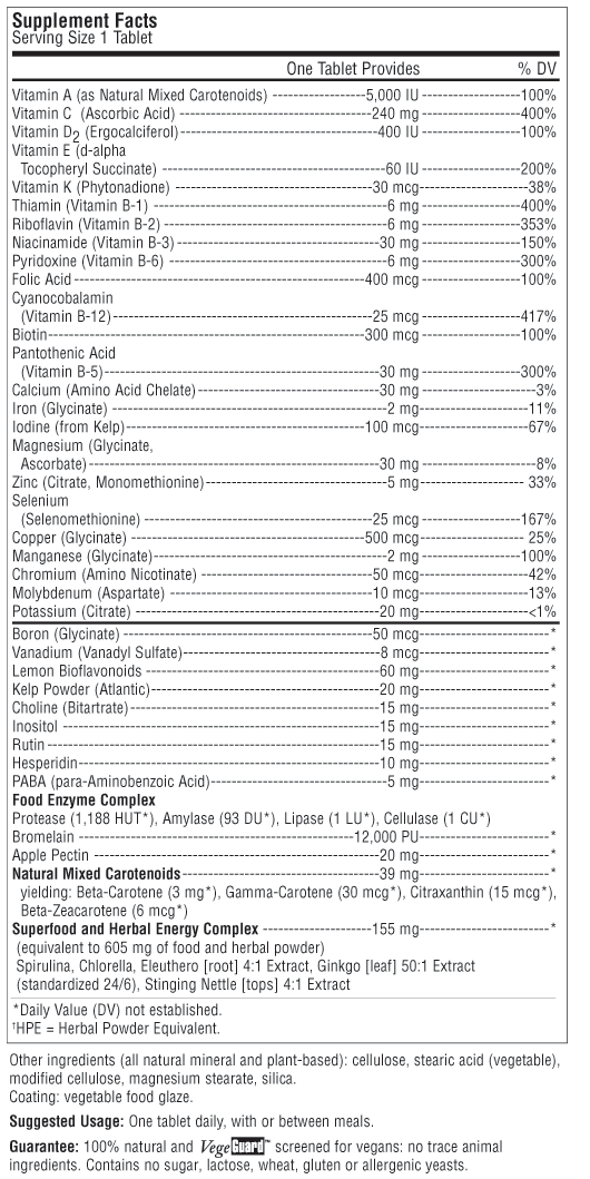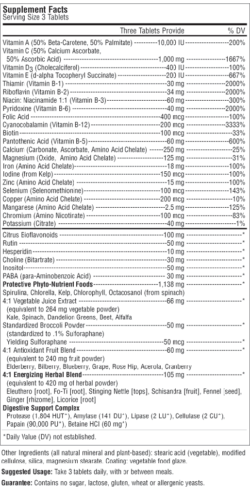 Complete Nutritional System RAI09 - 90 Tabs - $22.95 RAI10 - 180 Tabs - $45.95 Buy Now Complete Nutritional System™ #1 Energy Support Multivitamin Potent Antioxidant Protection Highest Potency Green Foods The original green foods multivitamin helps to promote your body's natural energy production with comprehensive nutritional support and over 1,100 mg of green foods for vitality – in just 3 tablets per day. View Nutritional Facts *These statements have not been evaluated by the Food and Drug Administration. This product is not intended to diagnose, treat, cure or prevent any disease.