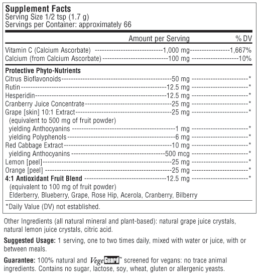 Super C Powder RAI647 - 4 oz - $14.95 Buy Now Super C Powder Powerful Antioxidant Formula Protective Phyto-Nutrients Gentle on the Stomach This one-of-a-kind powdered formula is 100% buffered, great tasting and sugar-free, delivering 1,000 mg of vitamin C and 100 mg of calcium per easy-to-digest serving, plus grape, cranberry and red cabbage with anthocyanidins for capillary health* View Nutritional Facts *These statements have not been evaluated by the Food and Drug Administration. This product is not intended to diagnose, treat, cure or prevent any disease.