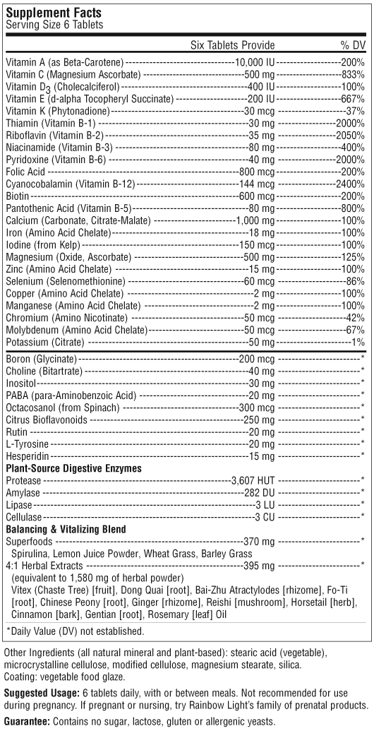 Just Once Iron Free Multivitamin RAI704 - 30 Tabs - $12.50 Buy Now Just Once® Iron-Free SafeGuard™ Multivitamin Potent & Science-Safe Gentle on the Stomach 100% Natural & Vegetarian Completely vegetarian nutrition compatible with certain prescription medications, providing the perfect way for the whole family to help fill gaps in the diet with evidence-based nutrient potencies, whole foods and plant-source enzymes to ease digestion View Nutritional Facts *These statements have not been evaluated by the Food and Drug Administration. This product is not intended to diagnose, treat, cure or prevent any disease.